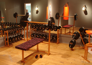 Libby Black presents her immersive sculptural installation Work Out, made from paper, paint, and hot glue. Black’s installation explores the relationship between fitness, beauty, and consumerism, with a room full of Prada stationary bikes, Louis Vuitton bench press, a Burberry punching bag, and Chanel weight belt.