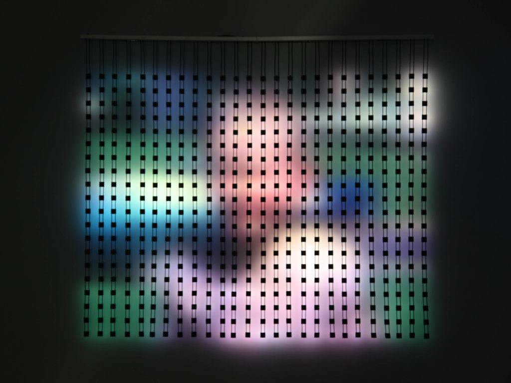 Jim Campbell’s custom electronic sculptures and installations have made him a worldwide leader in the use of computer technology as an art form. His pioneering research in HDTV and LED lighting, technologies that he uses to reduce visual information to the bare minimum, produce low-resolution works that explore what fellow artist Chris Salter describes as existing “in the limen between clarity and obscurity, the ephemeral and the concrete, the human and the technical.” His collaboration with Bay Area sculptor Jane Rosen further explores the territory between perception and cognition.