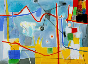 The artists in One Thing Leads To Another use repetition and serial procedures to systematically and sometimes playfully create a series of related works. By imposing constraints on their process, (which may dictate materials, dimensions, subject matter or involve organizational principles like alphabetical or numerical systems) they explore the endless variables within their framework, so that one work will inform the next one and so forth.