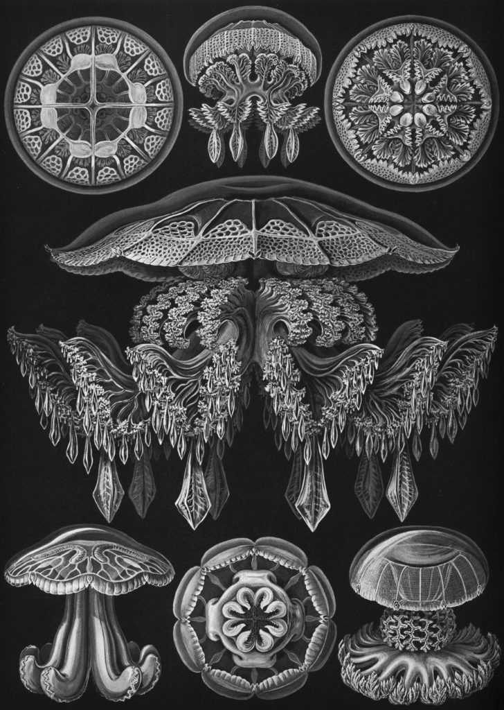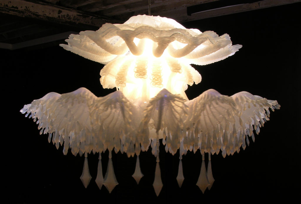 Timothy Horn: Medusa: Australian artist Timothy Horn exhibits Medusa, a massive chandelier made of silicone rubber and fiber optics. The work was inspired by the ornate jellyfish illustrations of nineteenth-century German zoologist Ernst Haeckel. Both monstrous and beautiful, Medusa’s organic and glowing form follows Horn’s interest in the history of ornamentation.