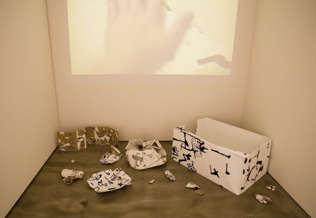 Naomie Kremer: Age of Entanglement marks the second exhibition of the artist’s work at the ICA. Shown a decade later, Age of Entanglement offers the rare opportunity to present the next chapter in the artist’s oeuvre and provides visitors with the chance to see the evolution of the artist’s career from one decade to the next. The exhibition title refers to the blending of disparate elements in Kremer’s work, including her hybrid combinations of painting and video, text-based pieces with video and music, and video works that incorporate multiple perspectives.