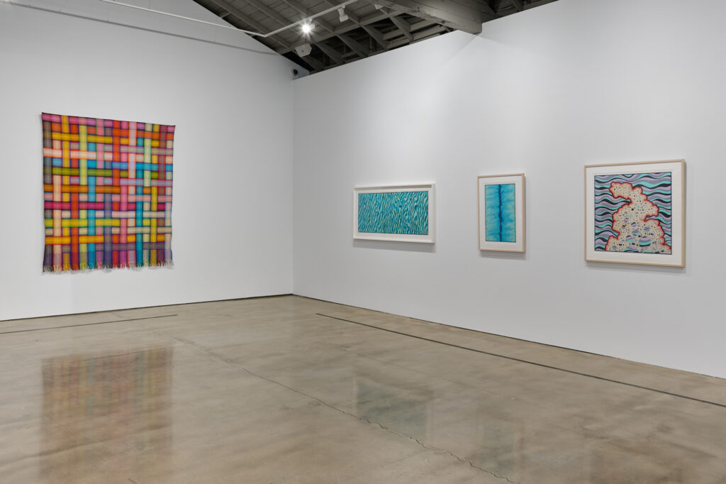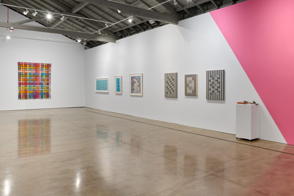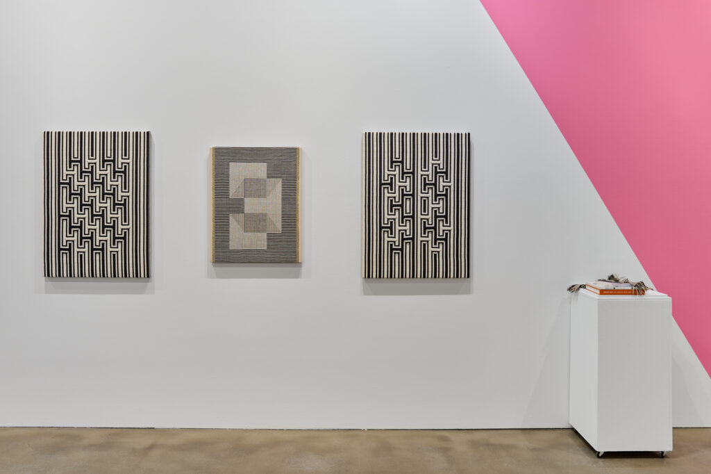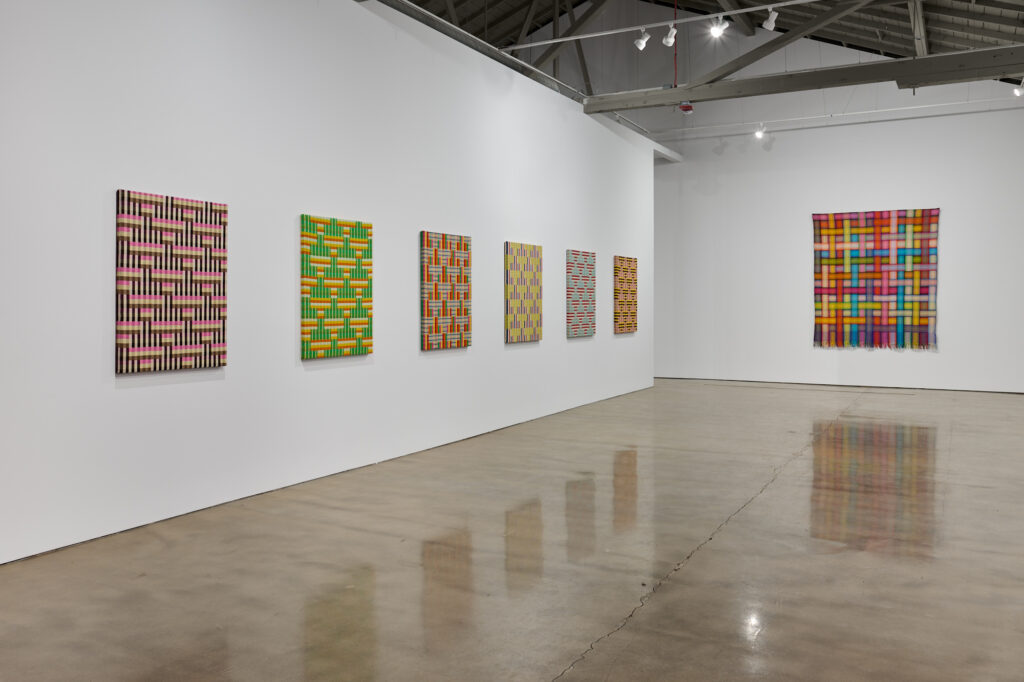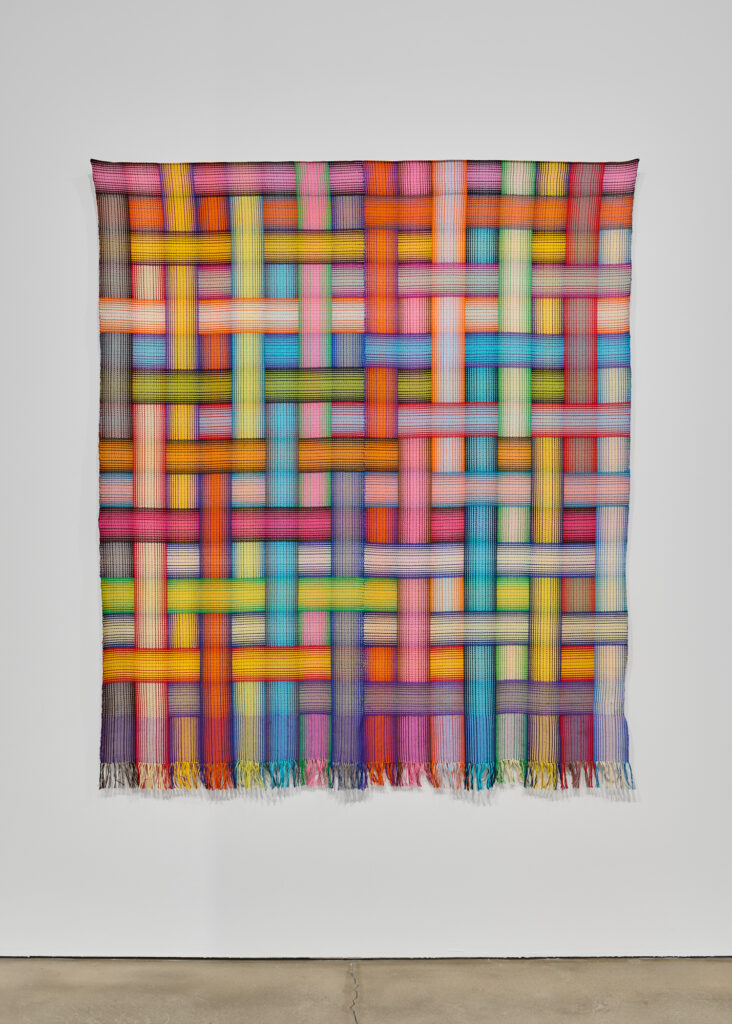 Susie Taylor’s loom-based works are stunning color ruminations on the history of tapestries, process, and decoration; informed by weavers of the Bauhaus such as Albers and Albers, Margarete Köhler, Marli Ehrman, and Gunta Stölzl and following in the footsteps of other important weavers whose work transcends traditional presentations, such as Lia Cook, Olga de Amaral, and Sheila Hicks. Yet, Taylor not only builds on those who have come before her, but invents weaving techniques never seen before. Taylor’s works in this instance serve as major statements about abstraction, color, and composition, with bold color blocks and soft transitions that speak to the very nature of perception, let alone the history of weaving and technology.