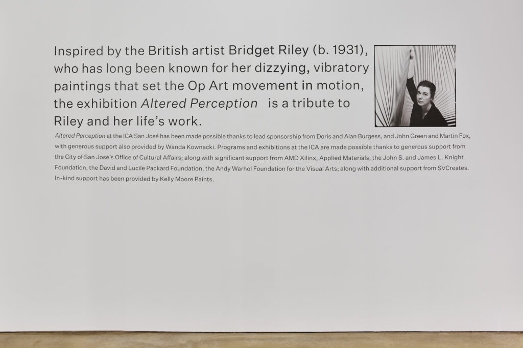 Altered Perception at the ICA San José has been made possible thanks to lead sponsorship from John Green and Martin Fox. Programs and exhibitions at the ICA are made possible thanks to generous support from the City of San José’s Office of Cultural Affairs; along with significant support from Applied Materials, the John S. and James L. Knight Foundation, the David and Lucile Packard Foundation, the Andy Warhol Foundation for the Visual Arts; along with additional support from SVCreates. In-kind support has been provided by Kelly Moore Paints.
